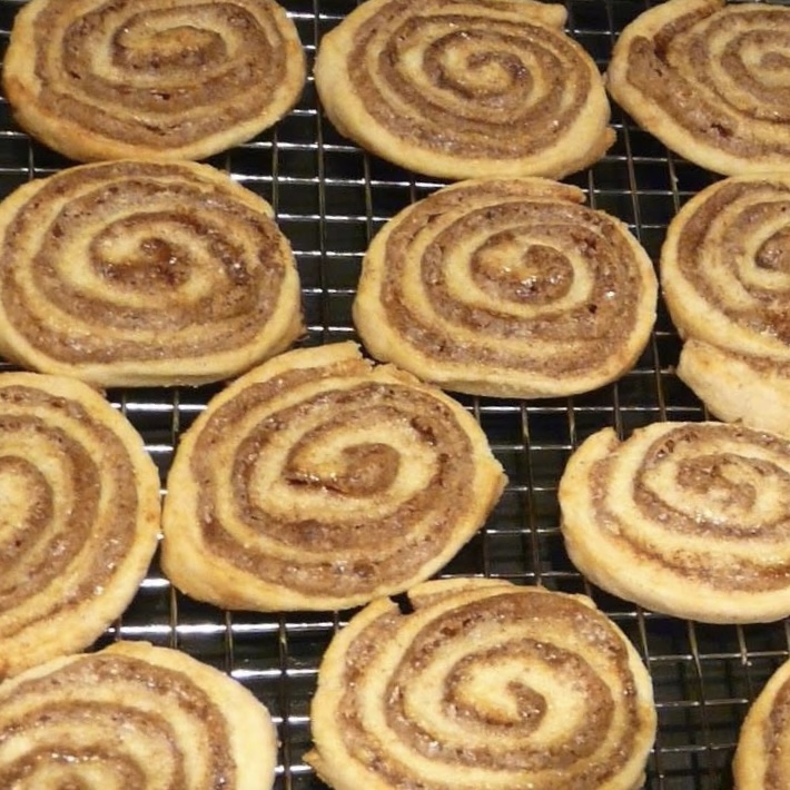 While the cinnamon bun cookie recipes I’ve come across are typically shortbread based, these are pie crust based. I’ve been playing with this recipe for the past decade, and I think I’ve finally settled on my favourite version. The trick is to combine the best of two worlds – the flakiness and chewiness of shortening-based pie crust with the flavour and crunch of butter-based pie crust. Add to that the crunch of melted white sugar with the flavour and ooze of brown sugar.